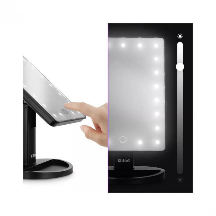 С косметическим зеркаломКТ-3172 нанесение макияжа и проведение косметических процедур станет удобнее. Зеркало устанавливается на стол. Подставка зеркала позволяет отрегулировать угол наклона зеркальной поверхности.