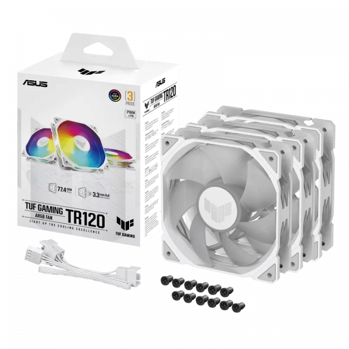 Вентилятор для корпуса ASUS TUF GAMING TR120 FAN ARGB WHITE 3IN1 120x120x28 AuraSync TR120-1/WT/3 IN