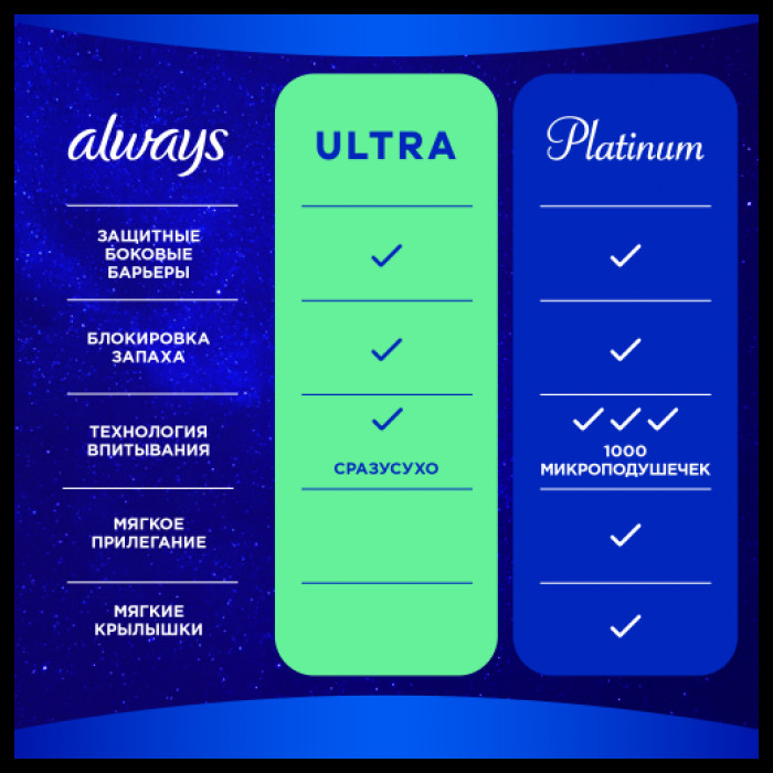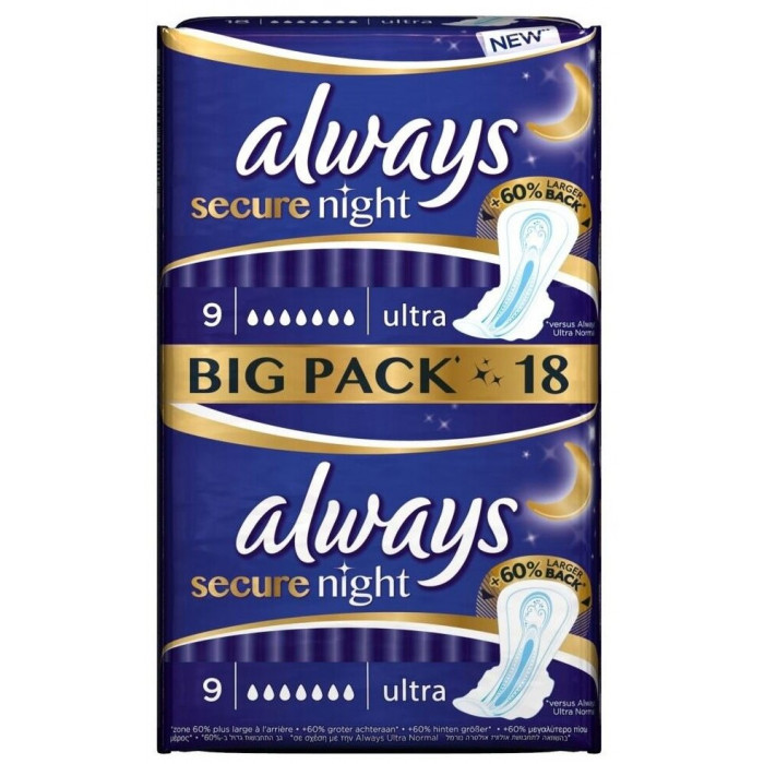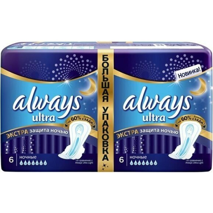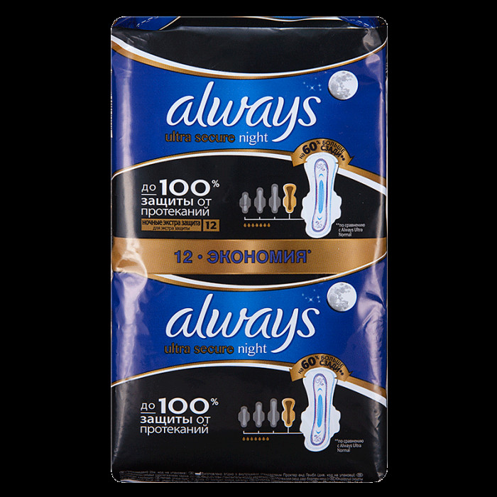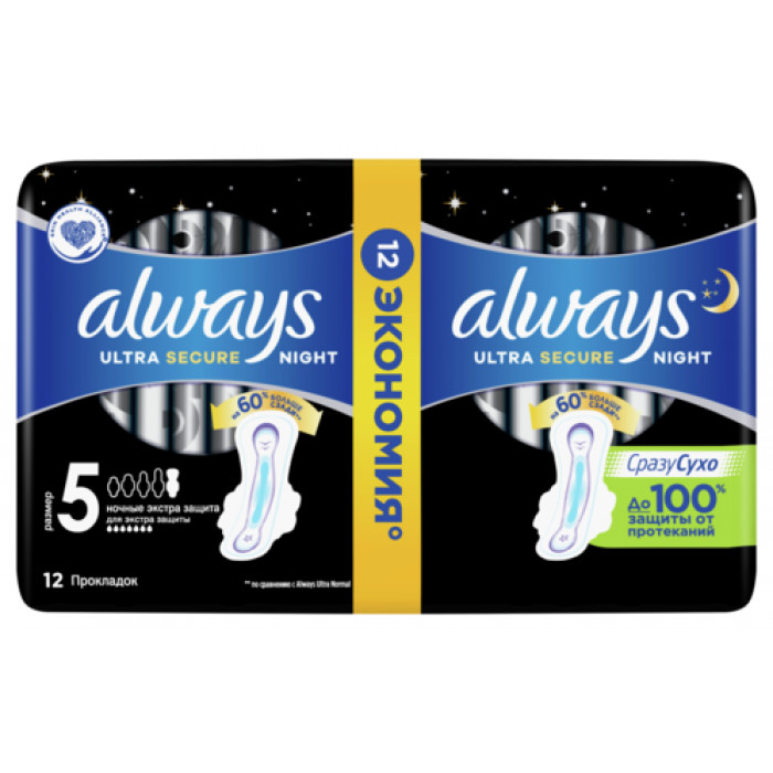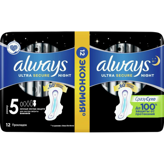 ALWAYS Ultra Ультратонкие Женские гигиенические прокладки Secure Night Duo 22шт
