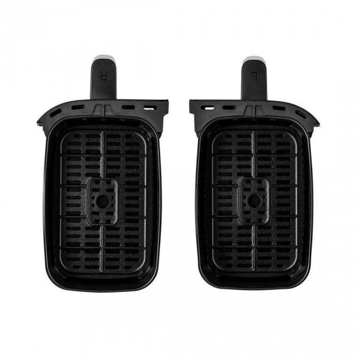 Продукты готовятся на решётках, которые вставляются в поддоны. Благодаря системе циркуляции горячего воздуха, продукты обжариваются равномерно со всех сторон, получаясь нежными внутри и с хрустящей корочкой снаружи.Индивидуальная настройка времени и температуры для каждого отсека