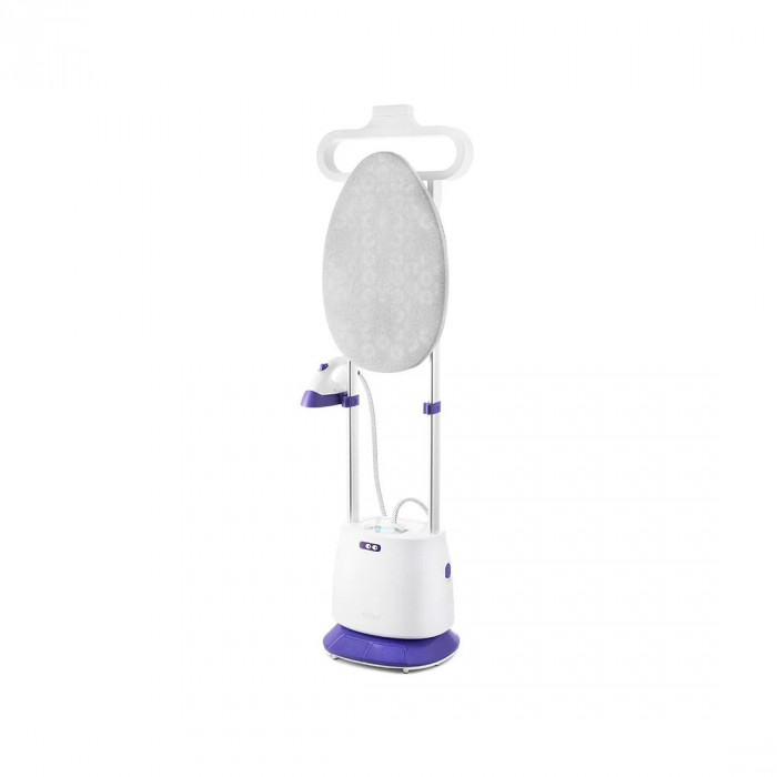 Ёмкость съёмного резервуара составляет 1,6 л. Такого объёма хватит минимум на 35 минут беспрерывного отпаривания. Время нагрева составит не более 1 минуты.Передвижная напольная конструкция, педали для смотки шнура и вкл/выкл
