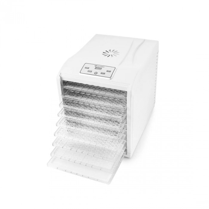 Сушилка Kitfort КТ-1909 основана на нагревателе конвекционного типа мощностью 700 Вт, что вкупе с массивным вентилятором горизонтального типа обеспечивает качественное и эффективное высушивание. Отличительной особенностью модели является возможность тонкой настройки уровня температуры в пределах от 35 °C до 70 °C, что позволяет подобрать оптимальный режим для приготовления разных продуктов.