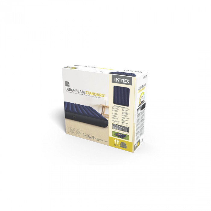 Матрас надувной Dura-Beam Classic Downy Airbed (King) 203 х 183 х 25 см, INTEX, 64755, Винил, Флокированый верх, Технология Fiber-Tech, Синий, Цветная коробка