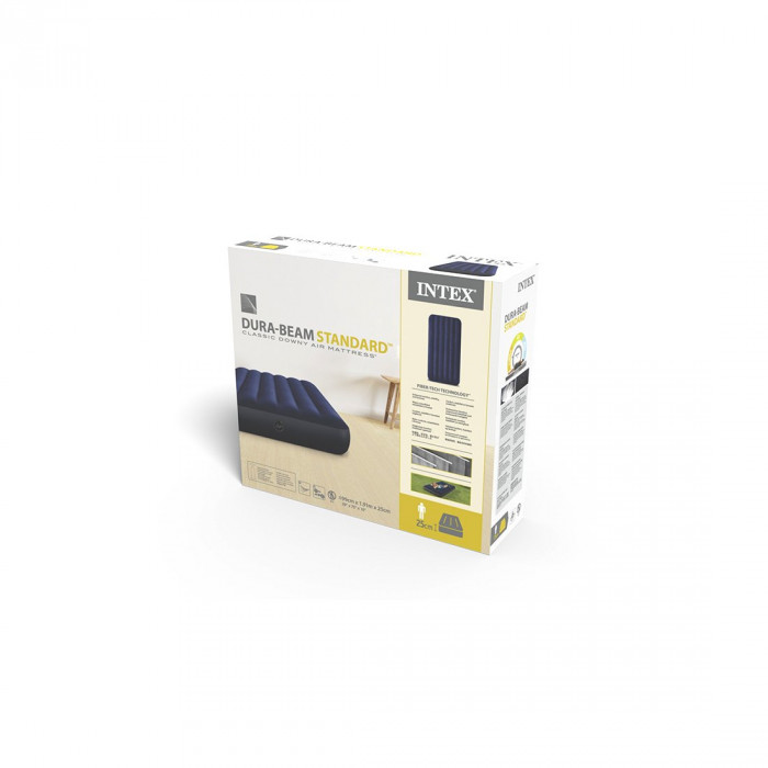 Матрас надувной Dura-Beam Classic Downy Airbed (Twin) 191 х 99 х 25 см, INTEX, 64757, Винил, Флокированый верх, Технология Fiber-Tech, Синий, Цветная коробка