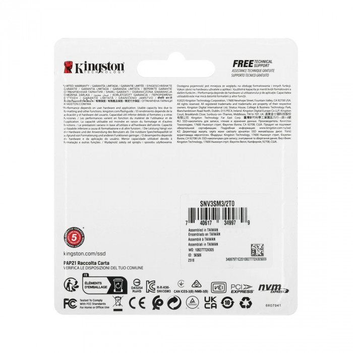 PCIe 4.0 NVMe SSD-накопители Kingston NV3 построены на основе PCIe Gen4x4 NVMe контроллера нового поколения, обеспечивающего скорость чтения до 6000 и записи до 5000 МБ/с1. Компактные форм-факторы M.2 2280 и 2230 с односторонним монтажом компонентов пригодятся в малогабаритных системах, таких как ноутбуки и игровые консоли2. Накопители NV3 отличаются пониженным нагревом, что позволяет оптимизировать производительность системы без ущерба для ее эффективности. Диапазон емкостей от 500 ГБ до 4 ТБ3 обеспечит достаточное пространство для приложений, документов, фото, видео, игр и т. д.