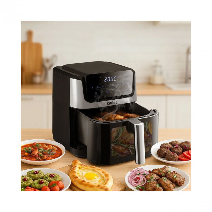 Современный аэрогриль КТ-2284 помогает в ежедневной готовке, беря на себя процесс выпечки, запекания или разморозки. А главный плюс – вам практически не понадобится масло, ведь аэрогриль использует систему обдува горячим воздухом.