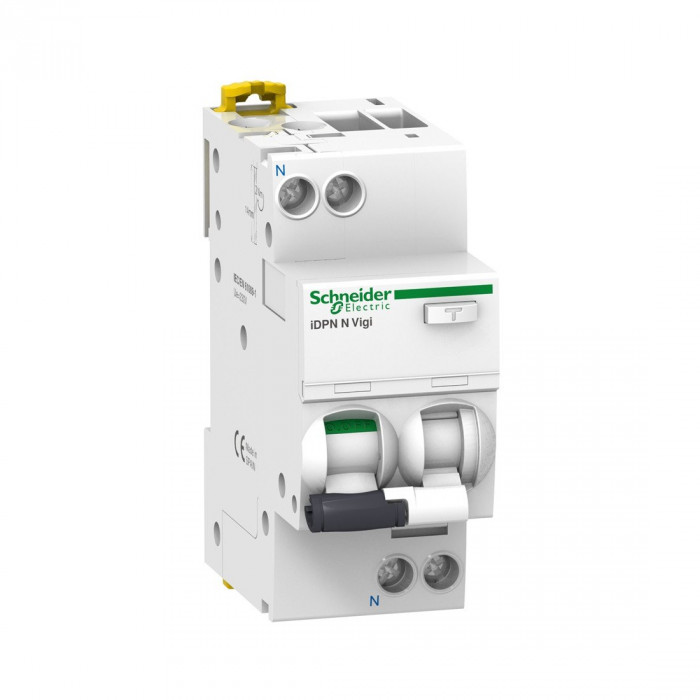 Данное изделие Acti9 iDPN Vigi является модульным автоматическим выключателем дифференциального тока с максимальной токовой защитой (АВДТ). Это автоматический выключатель 1P+N с 1 защищенным полюсом и кривой отключения C. Класс защиты от утечки на землю - тип А с чувствительностью 30 мА. Временная задержка защиты от утечки на землю является мгновенной. Это изделие обеспечивает защиту от короткого замыкания, перегрузки кабелей, поражения электрическим током при непрямом контакте и от опасности возгорания. Индикатор замыкания на землю на передней панели позволяет быстро определить тип неисправности. Он обеспечивает безопасное и надежное решение для коммерческих и промышленных приложений с высокой отключающей способностью. Данное изделие соответствует требованиям стандарта EN/IEC 61009-2-1.