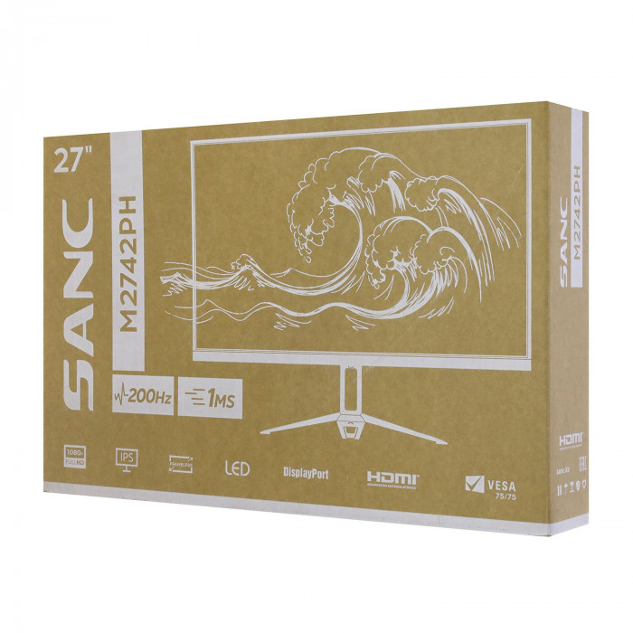 Игровой монитор 27" Sanc M2742PH V3, 1920x1080 IPS, 1ms, 165Hz, 300cd/m2, 1000:1, 2xHDMI/DP, White