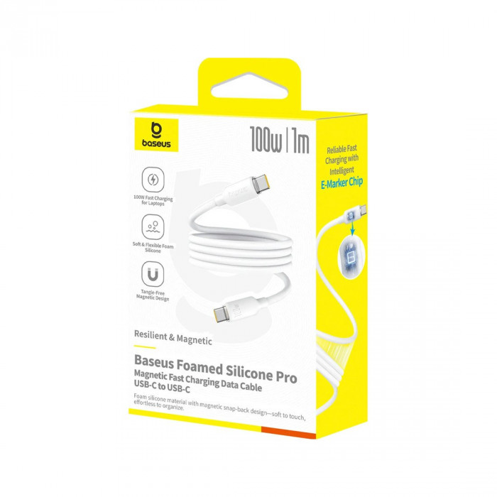 Интерфейсный кабель Baseus Foamed Silicone Pro Magnetic USB-C to USB-C 100W White 1m (E0426D01)