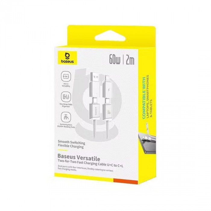 Интерфейсный кабель Baseus Versatile U+C to C+L 60W 2m White (P10383000211-01)
