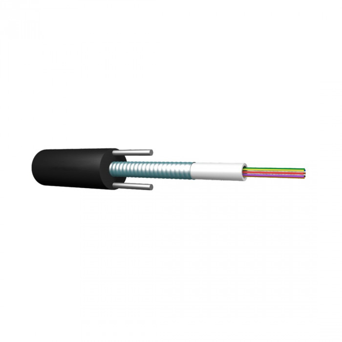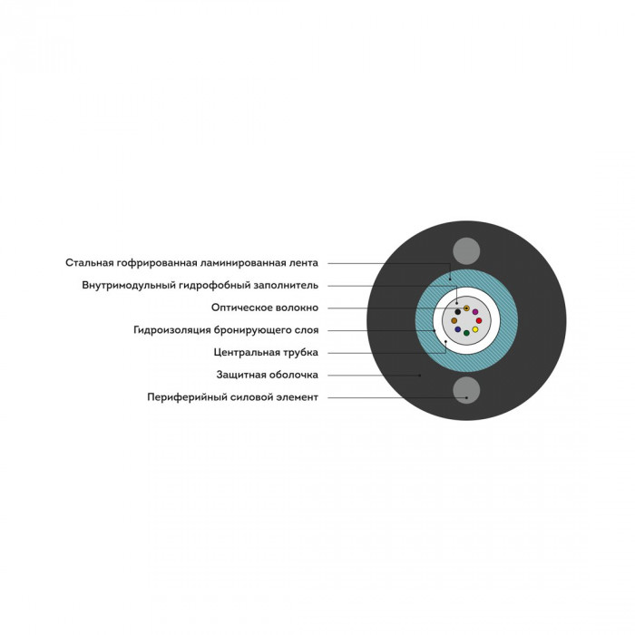 Брони, в качестве которой выступает гофрированная лента из стали. Она защищает волоконно-оптический кабель от разрыва, а также от повреждения грызунами, проживающими в кабельной канализации.
