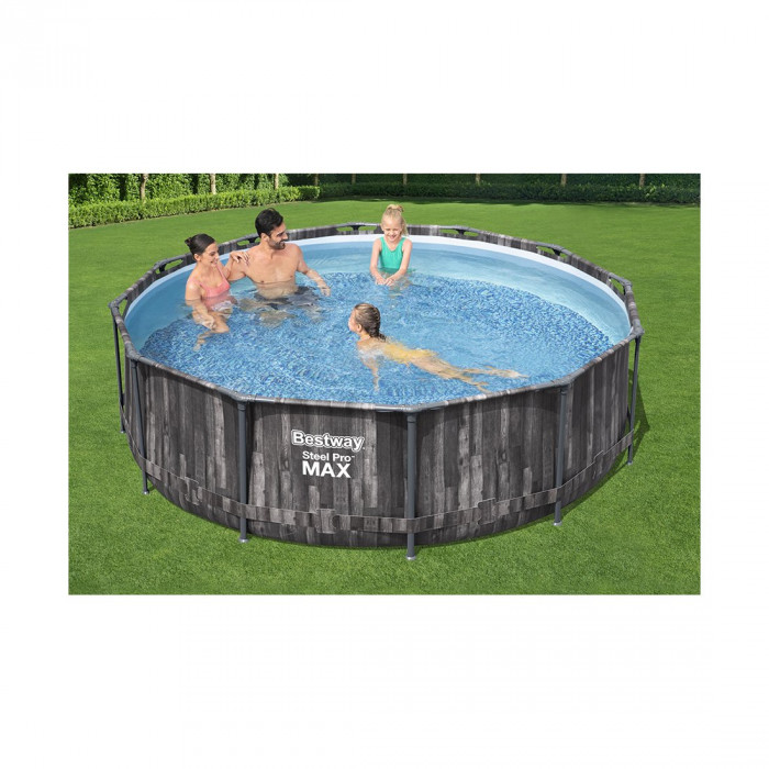Каркасный бассейн Steel Pro MAX 366 х 100 см, BESTWAY, 5614X, Винил, 9150 л., Стальной каркас, Ф-насос 58383 (2006л/ч), Лестница 58335, Деревянный принт, Цветная коробка