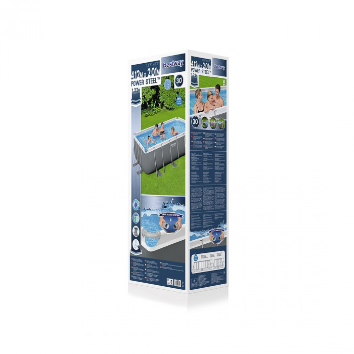 Каркасный бассейн Steel Pro MAX Rectangular 412 х 201 х 122 см, BESTWAY, 56456, Винил, 8124 л., Стальной каркас, Ф-насос 58383 (2006л/ч), Лестница 58336, Серый, Цветная коробка