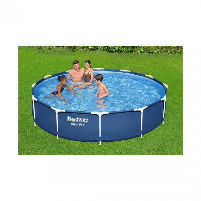 Каркасный бассейн Steel Pro 366 х 76 см, BESTWAY, 56681, Винил, 6473 л., Стальной каркас, Ф-насос 58381 (1249л/ч), Синий, Цветная коробка