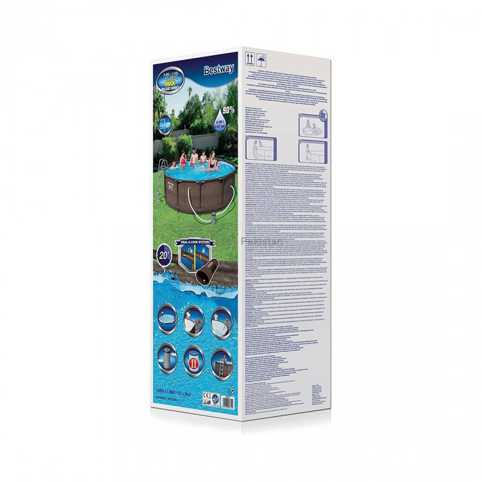 Каркасный бассейн Steel Pro MAX 366 х 100 см, BESTWAY, 56709, Винил, 9150 л., Стальной каркас, Лестница 58335, Ф-насос 58383 (2006л/ч), Ротанговый принт, Цветная коробка