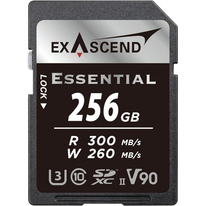 Карта памяти Exascend Essential 256 GB SDXC II UHS‑II (V90) — высокопроизводительная SD‑карта памяти с интерфейсом UHS‑II, скоростным классом V90/U3/Class 10 и объёмом 256 ГБ, обеспечивающая максимальную последовательную скорость чтения до ≈300 МБ/с и записи до ≈260 МБ/с. Она подходит для профессиональной фото‑ и видеосъёмки, в том числе записи 8K‑видео, а также быстрой передачи больших мультимедийных файлов.