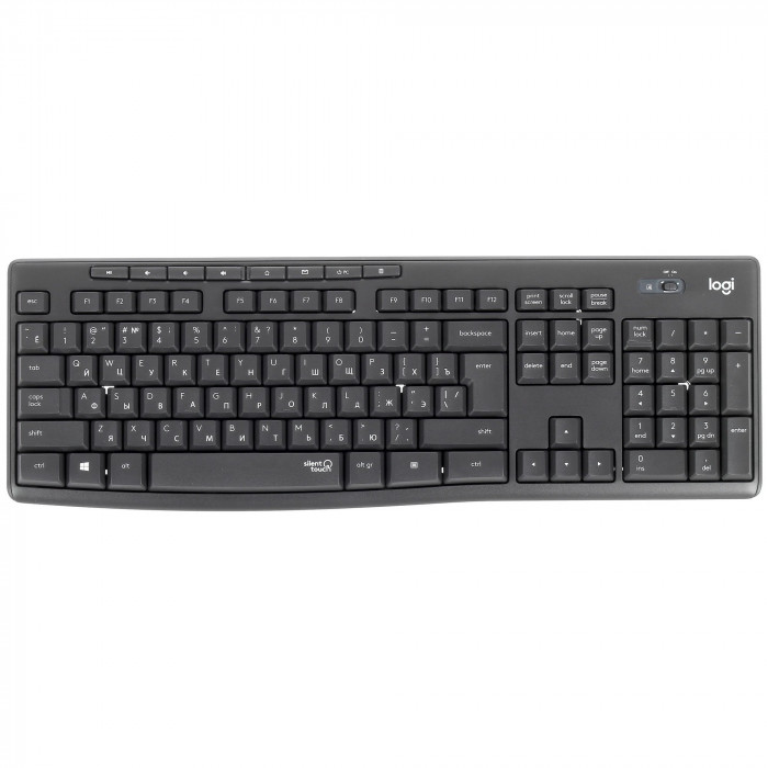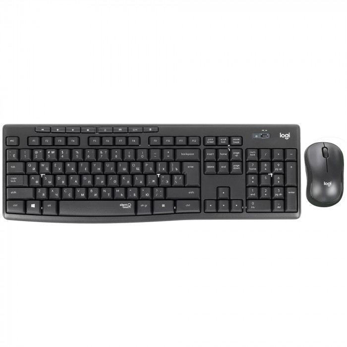 Logitech MK295 Silent — беспроводной комплект клавиатуры и мыши с технологией SilentTouch, снижающей шум нажатий и кликов. Полноразмерная клавиатура на 111 клавиш с EN/RU раскладкой и оптическая мышь с разрешением 1000 DPI обеспечивают комфортную и тихую работу через стабильное 2.4 GHz USB-подключение.
