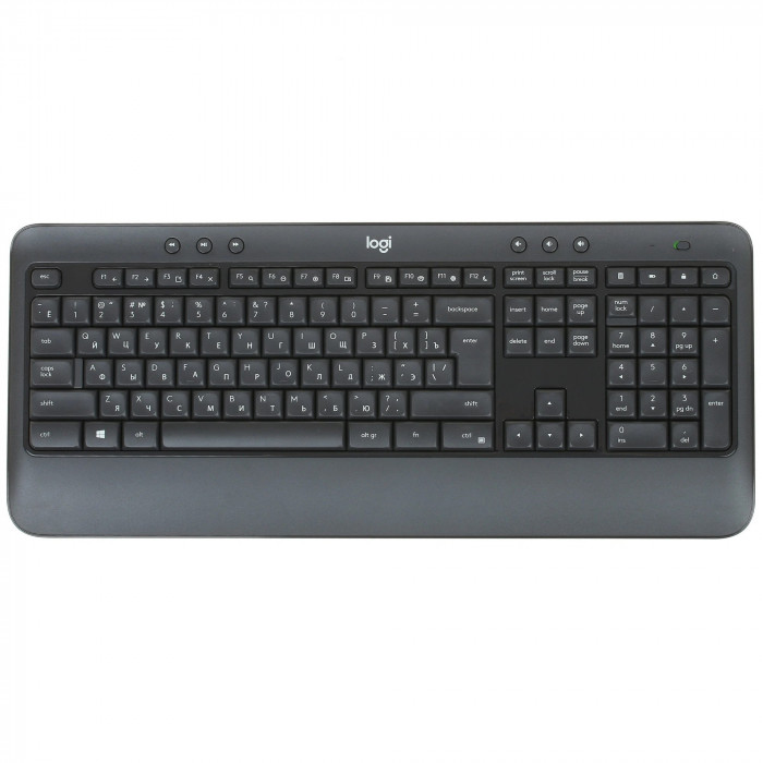Logitech MK540 Advanced — надёжный беспроводной комплект клавиатуры и мыши с подключением через 2.4 GHz USB-ресивер. Полноразмерная клавиатура на 114 клавиш с EN/RU раскладкой и оптическая мышь с разрешением 1000 DPI обеспечивают комфортную и стабильную работу без проводов.