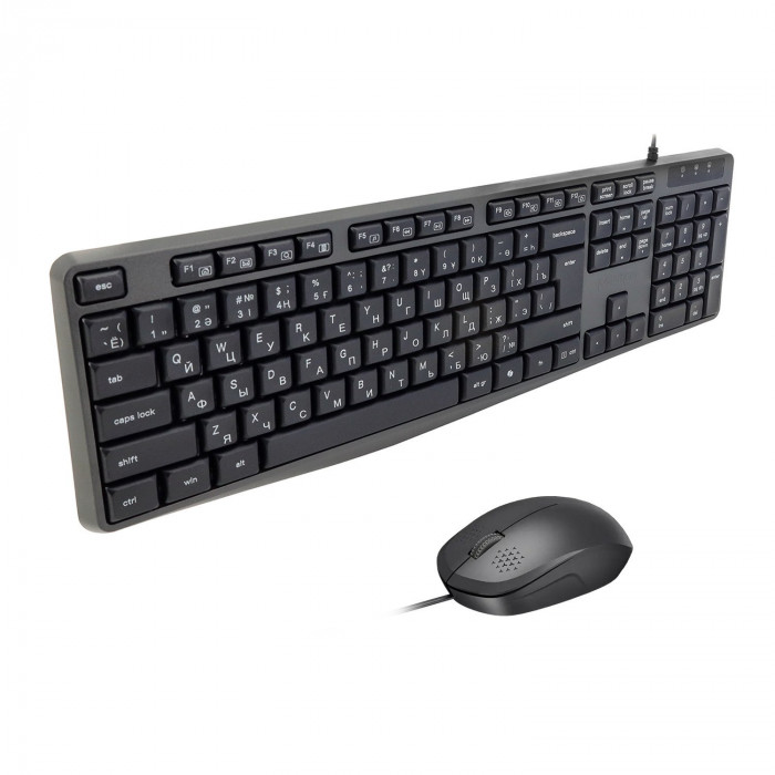 Meetion C235 Black — проводной комплект «клавиатура + мышь» с клавиатурой на 104 клавиши и поддержкой EN/RU/KZ. Мышь с разрешением 1200 DPI, оба устройства подключаются через USB и имеют кабель длиной 1.5 м. Подходит для офисной работы, учебы и повседневного использования.