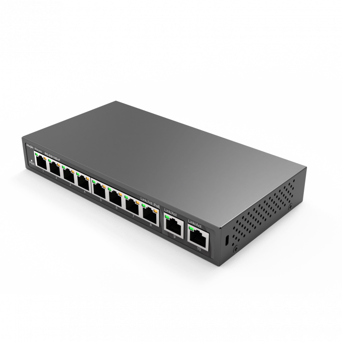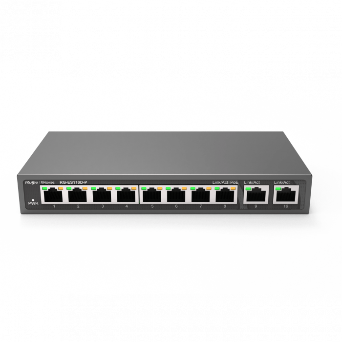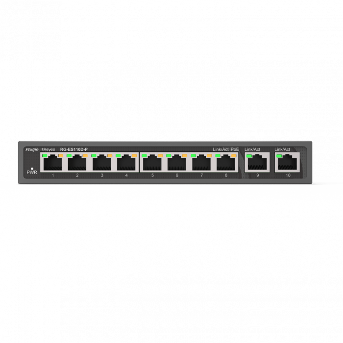 Коммутатор неуправляемый Reyee RG-ES110D-P, 8x10/100 PoE, 2x10/100 Uplink, PoE 110W