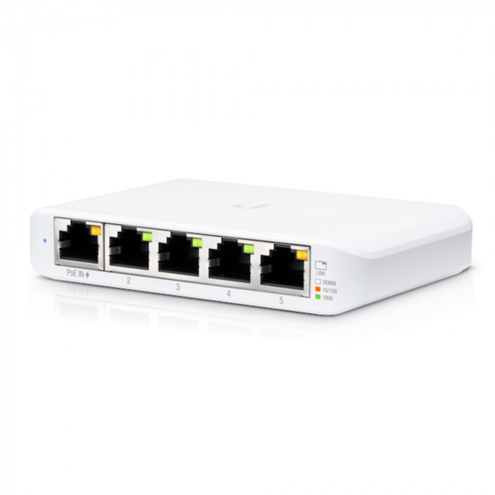 Коммутатор Ubiquiti UniFi Switch Flex Mini (USW‑Flex‑Mini) — компактный управляемый Layer 2 Gigabit‑коммутатор с 5 портами RJ45 10/100/1000 Мбит/с, поддержкой PoE‑in и питания через USB‑C, с низким энергопотреблением (~2...