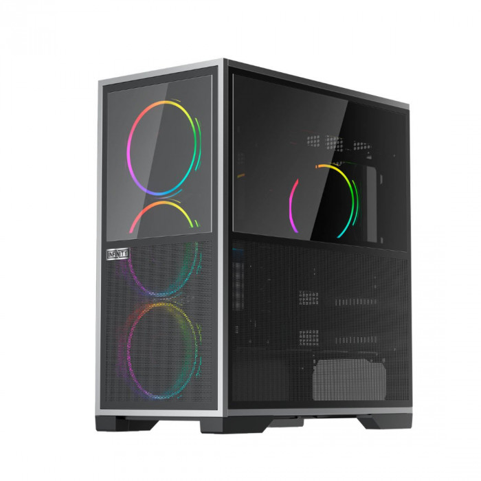 Зеркальное стекло придаст вашему корпусу элегантность и выразительный стиль. Его отражающая поверхность гармонично вписывается в любой интерьер, визуально расширяя пространство и создавая потрясающий эффект благодаря RGB-подсветке и внутренней подсветке.