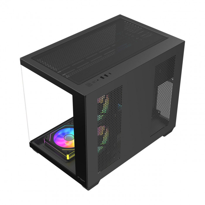 Компьютерный корпус FSP S342-BA, Без БП, 2xUSB3.0+Type-C, 6xARGB 120mm, 2xGlass, Black, mATX