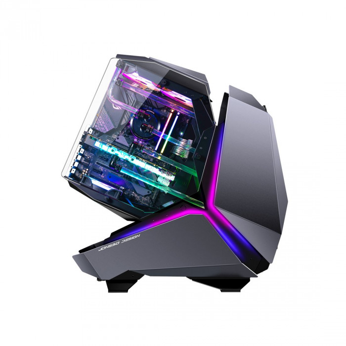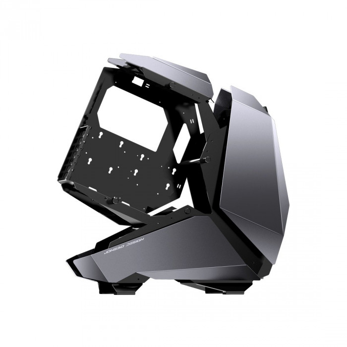 Корпус Jonsbo MOD5 привлекает внимание своим эффектным дизайном. Корпус открытого типа выполнен из алюминиевых и пластиковых элементов, имеет прозрачные боковые панели, через которые вы сможете демонстрировать мощное оснащение своего ПК и использовать светодиодные элементы. Корпус соответствует форм-фактору Full-Tower. Это отличное решение для оснащения универсального домашнего компьютера, игровой модели или высокопроизводительной рабочей станции. Отличительная особенность корпуса открытого типа – высокоэффективный теплообмен, благодаря которому вы сможете установить супермощные компоненты, требующие охлаждения.