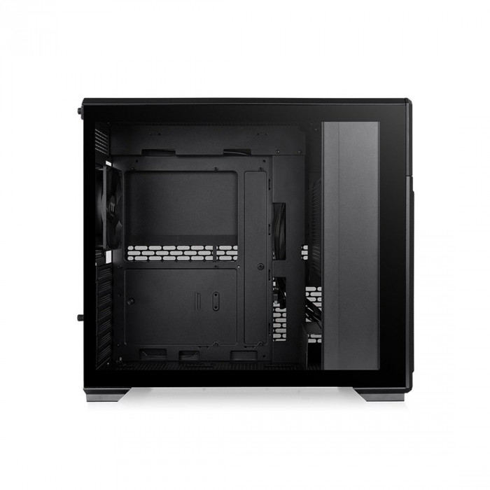 Для того, чтобы начинка вашего ПК была видна максимально, левая боковая панель выполнена из закаленного стекла толщиной 4мм. Использование закаленного стекла вместо традиционного пластика, гарантирует более высокую прочность. Крепление стекла осуществляется четырьмя болтами с удобной ручкой.