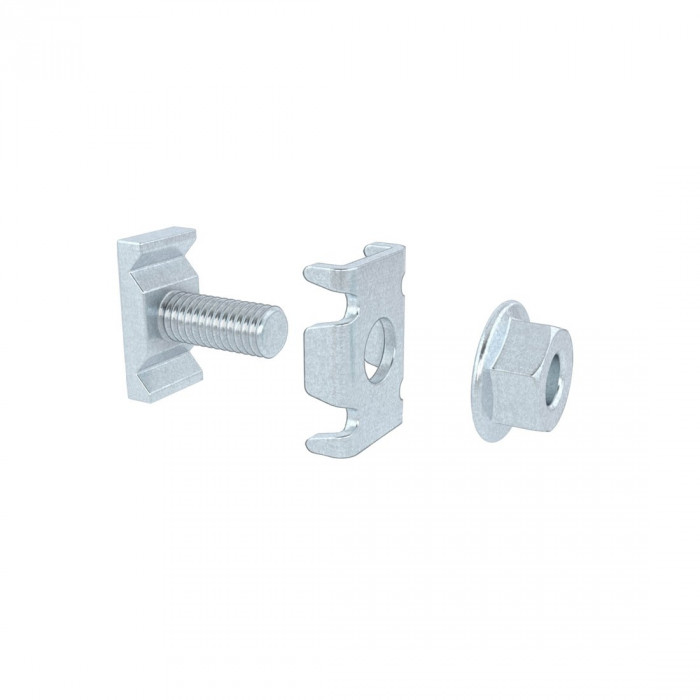 Монтажный комплект № 3 применяется при соединении секций проволочных лотков встык, изготовлении таких аксессуаров, как Т-образные отводы, повороты или редукции. В состав комплекта входят: винт М6х14, шайба со специальной головкой и гайка М6. Поставка комплекта осуществляется в упаковке из 50 штук.