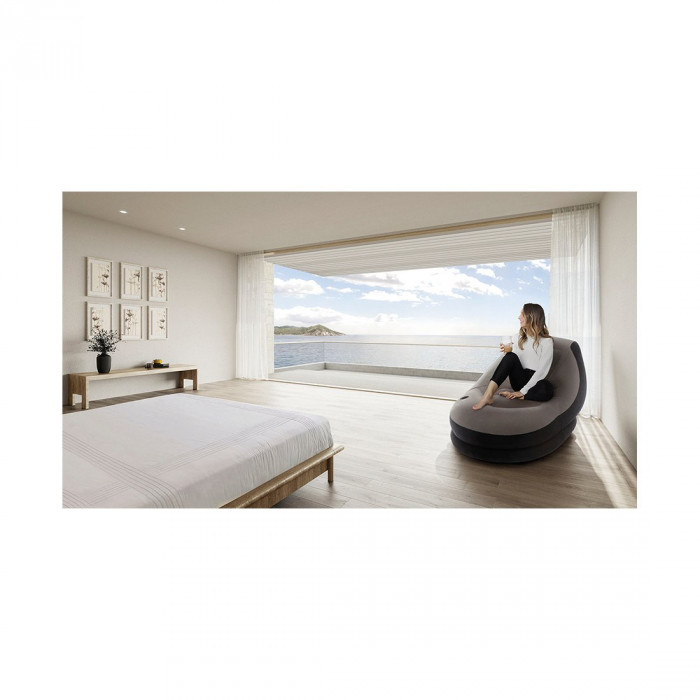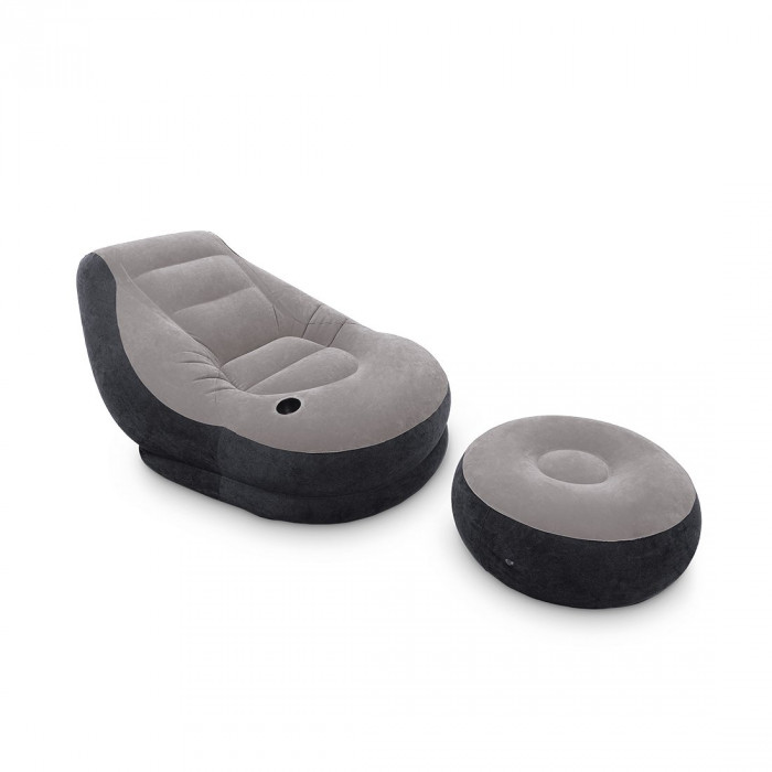 Кресло надувное Ultra 137 x 102 x 79 см, INTEX, 68564NP, Винил, Подставка для ног в наборе, Анатомическое, Встроенный подстаканник, Серое, Цветная коробка