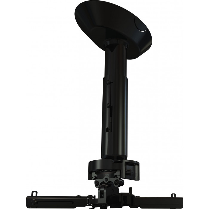 Универсальный потолочный комплект, состоящий из крепления, штанги 30 - 46 см и площадки к потолку для проектора. Обладает функциями наклона +/-25°, поворота +/-6° и вращения 360°. Выдерживает нагрузку до 23 кг. При необходимости сервисного обслуживания легко демонтируется с потолка. Поставляется в предварительно собранном виде и с отсортированными крепежами, что значительно облегчает инсталляцию. Совместим со всеми штангами c размером резьбы 1,5” американского стандарта NPT. Прокладка кабеля внутри штанги обеспечивает всей инсталляции аккуратный внешний вид...