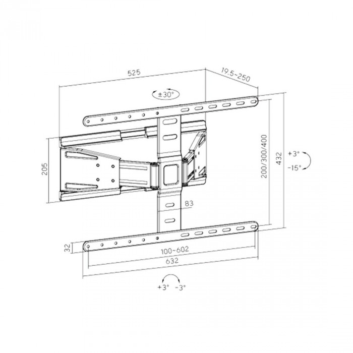 ● Регулировка уровня наклона: позволяет идеально расположить телевизор после подвешивания)