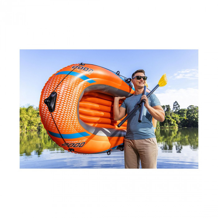 Bestway® Kondor Elite™ 2000 - это надувная лодка, которая станет отличным развлечением для семей, желающих исследовать воду вместе! Она идеально подходит для одного ребенка и одного взрослого (общая грузоподъемность 120 кг) и имеет хорошо заметный оранжевый цвет, его легко надуть, чтобы вы тратили меньше времени на настройку и больше времени на воде. Лодка имеет дополнительный уровень защиты благодаря конструкции с двумя воздушными камерами и удобному надувному дну, которое отлично амортизирует, обеспечивая расслабление и устойчивость. Ручка, прикрепленная к передней части лодки, обеспечивает удобство транспортировки по озеру или бассейну. Кроме того, по бокам встроены застежки для весел, которые помогут удержать входящие в комплект весла на месте, а обхватывающий канат со встроенными прокладками позволит вам причалить к или соединиться с друзьями. От гребли до рыбалки и просто плавания - эта лодка обещает незабываемое лето. Простой в использовании и транспортировке, Kondor Elite 2000 - это то, что нужно для вашего следующего дня на воде!