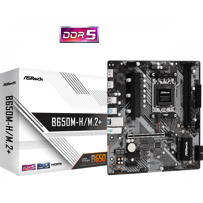 Материнская плата ASRock B650M-H/M.2+ AM5 2xDDR5 4xSATA3 2xM.2 HDMI DP mATX