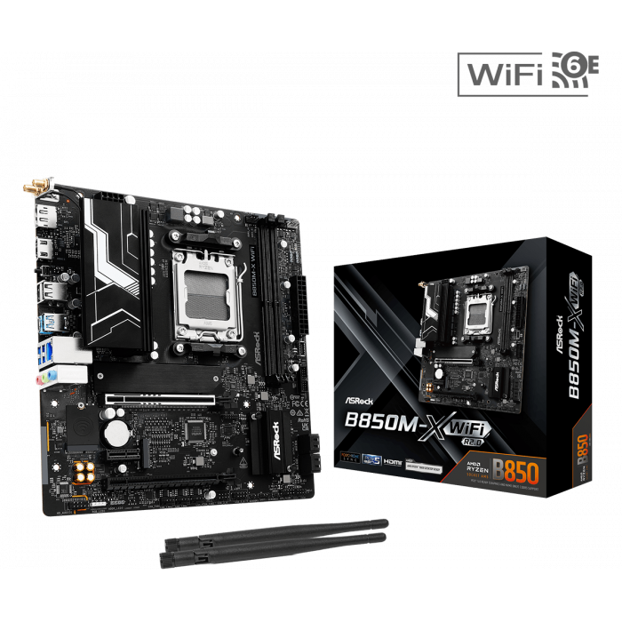 Материнская плата ASRock B850M-X WIFI R2.0 AM5 2xDDR5 4xSATA 2xM.2 Type-C HDMI DP WiFi6E mATX