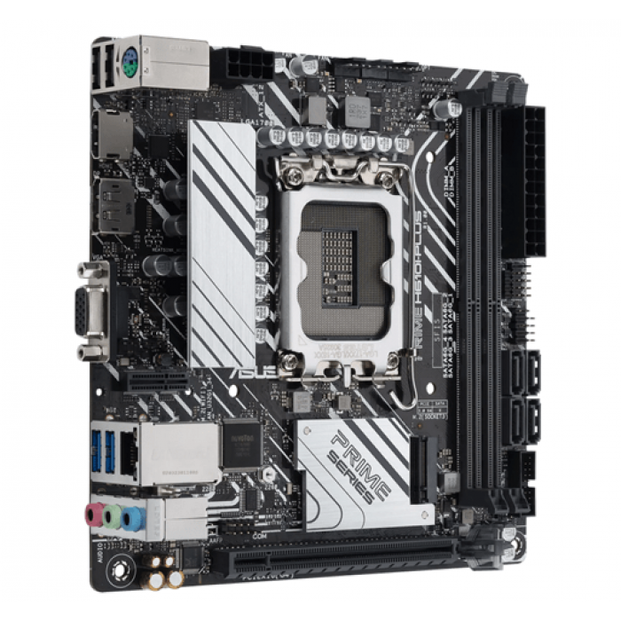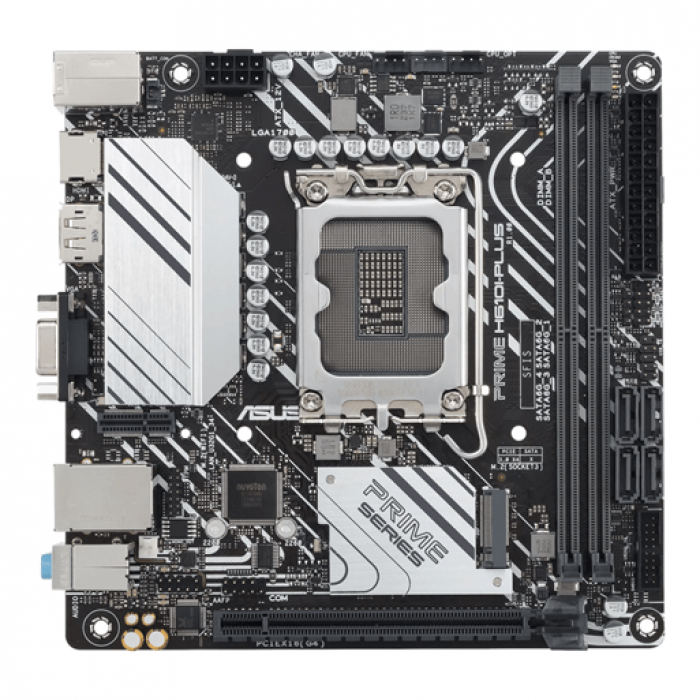Intel® H610 (LGA 1700) Mini-ITX motherboard with DDR5 5600, PCIe 4.0, M.2 slot, Intel® 1 Gb Ethernet, DisplayPort, HDMI™, D-Sub, USB 3.2 Gen 1 ports, SATA 6 Gbps, COM header, Mono-out header with Amp IC, ASUS Control Center Express (ACCE).