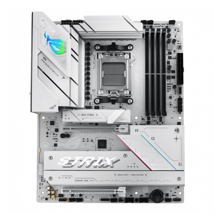 Elevate your build with the ROG Strix B850-A Gaming WiFi. Featuring a sleek white PCB and support for AMD Ryzen™ 9000 Series processors, this motherboard delivers the power and connectivity needed for advanced AI applications. With DDR5 support, full PCIe 5.0 capabilities, USB 20Gbps port, and WiFi 7, it's the ultimate blend of style and performance.