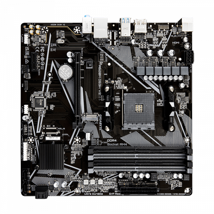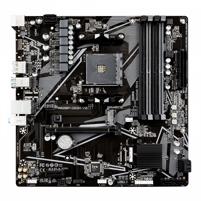 Материнская плата GIGABYTE A520M DS3H V2, AM4, 4xDDR4, PCIe3.0, DVI+HDMI, 4xSATA, M.2, GLAN, mATX