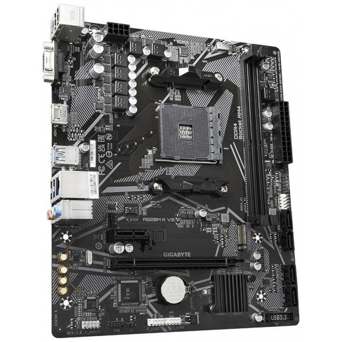 Материнская плата GIGABYTE A520M-K-V2, AM4, A520, PCIe16x, PCIe,D-SUB+HDMI, GLAN, 4SATA, 2DDR4, MATX
