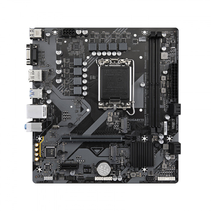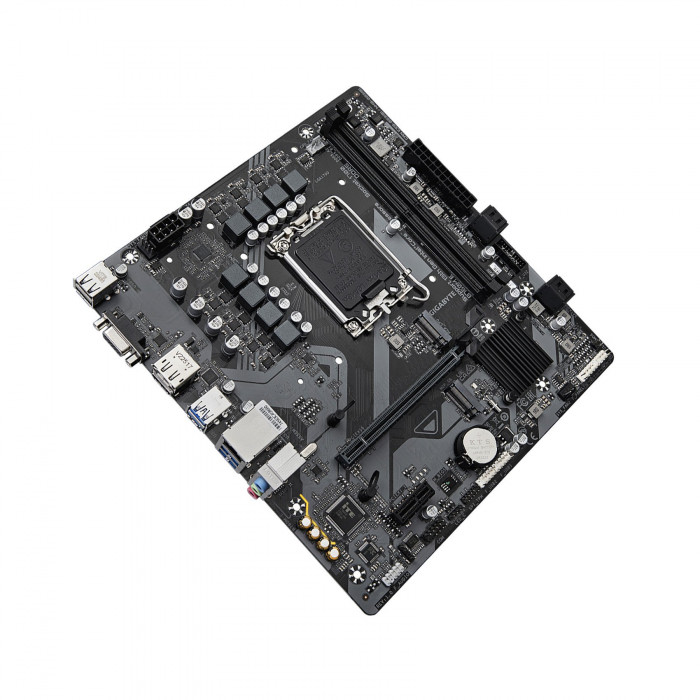 GIGABYTE B760M E — материнская плата формата mATX на чипсете Intel B760 с сокетом LGA1700. Поддерживает 2 модуля DDR5, слот PCIe 4.0, два M.2 накопителя, видеовыходы D-SUB (VGA), HDMI и DisplayPort (DP). Подходит для сборки домашних, офисных и игровых систем на базе процессоров Intel 13/12 поколения.