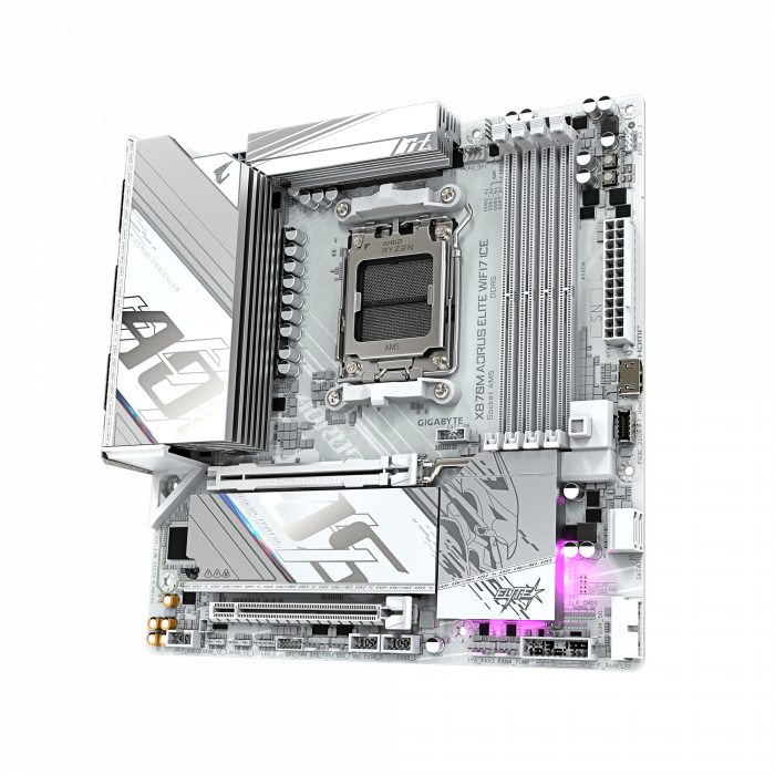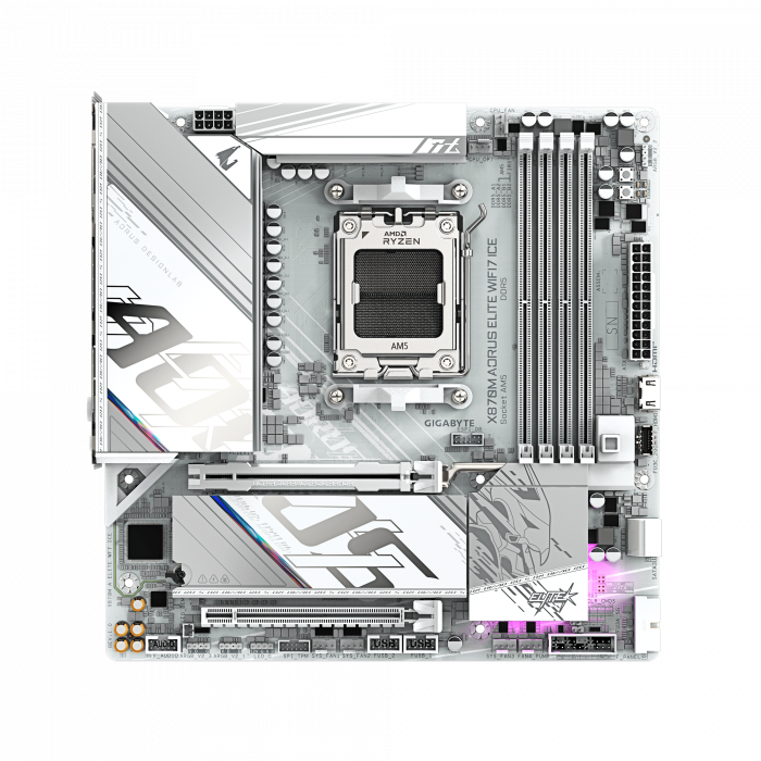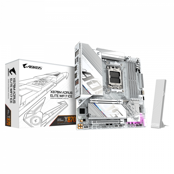 Материнская плата GIGABYTE X870M AORUS ELITE WF7 ICE, AM5, X870, 4xDDR5, 2xHDMI+2xUSB4, 2xM.2, mATX