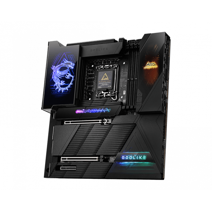 Созданная на базе чипсета Intel Z890 и для процессоров Core Ultra, материнская плата MEG Z890 GODLIKE оснащена Wi-Fi 7, сетевым интерфейсом 10G Super LAN, Thunderbolt 5, дополнительным питанием PCIe и инновационным Dynamic Dashboard III. Это устройство предназначено для максимальной производительности, обеспечивая стабильную работу даже в условиях экстремальных игровых нагрузок. Материнская плата оснащена встроенным 3,99-дюймовым полноцветным LCD-дисплеем, предоставляющим пользователям возможность осуществлять мониторинг параметров оборудования в режиме реального времени, диагностировать неисправности, отслеживать статус обновления BIOS, а также настраивать отображение часов и персонализировать интерфейс. Такое решение значительно повышает уровень удобства и качества взаимодействия с системой.