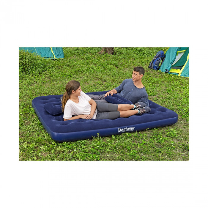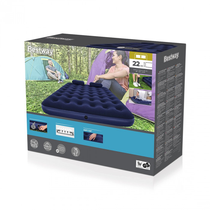 Матрас надувной Pavillo Aeroluxe Airbed (Queen) 203 х 152 х 22 см, BESTWAY, 67374, Винил, Насос 62002, 2 подушки, Флокированый верх, Синий, Цветная коробка