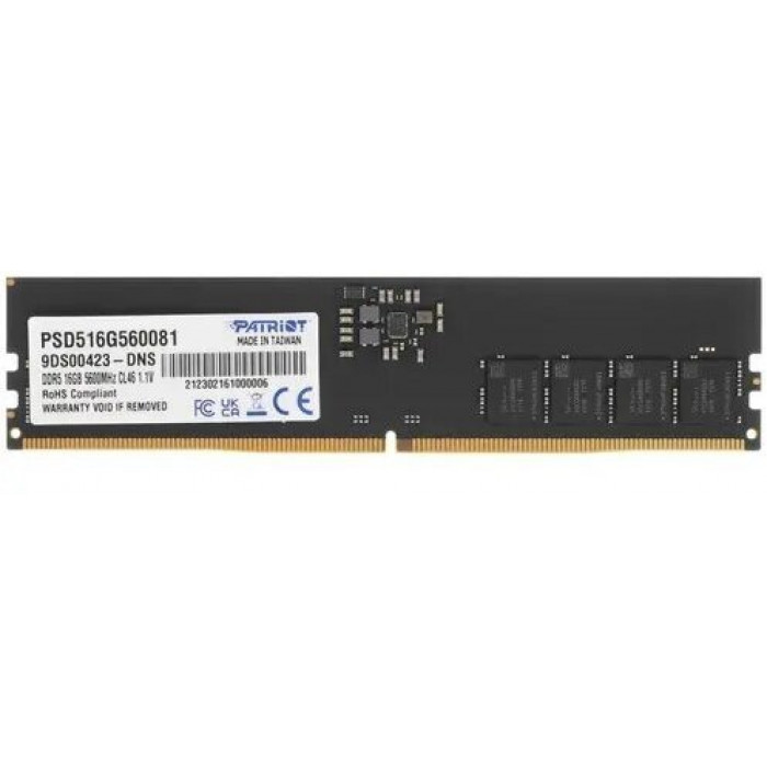 Модуль памяти Patriot Signature, PSD516G560081, DDR5, DIMM, 16Gb, 5600Mhz, CL46