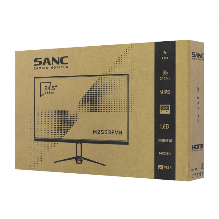 Монитор 24.5" Sanc M2553FVH, 1920x1080 IPS (LED), 240Hz, 1ms, 400 cd/m2, 1000:1, DP/HDMI