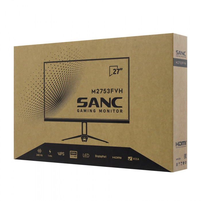 Монитор 27" Sanc M2753FVH, 1920x1080, IPS(LED), 240Hz, 1ms, 400 cd/m2, 1000:1, DP/HDMI