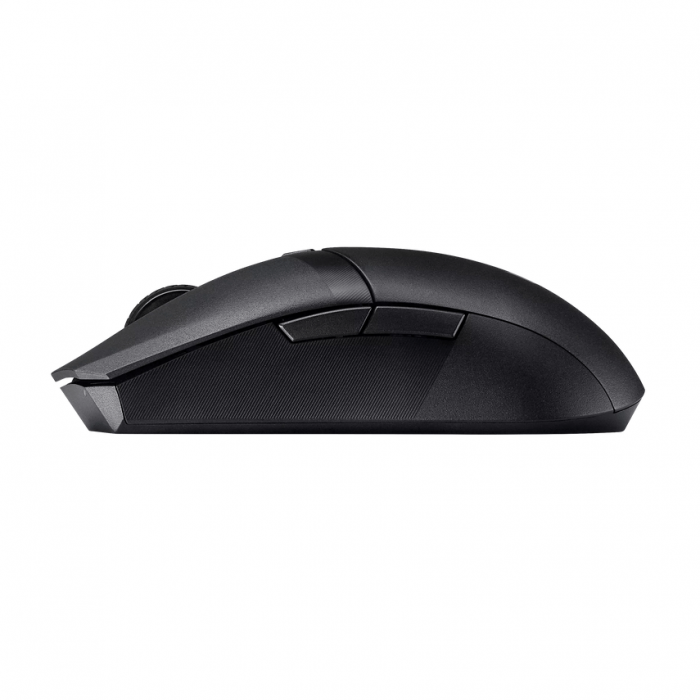 Легкая игровая мышь с симметричным корпусом: два беспроводных интерфейса, чувствительность до 12000 точек/дюйм, шесть программируемых кнопок, верхняя панель из полимера ПБТ с антибактериальным покрытием, тефлоновые ножки и приложение Armoury Crate.