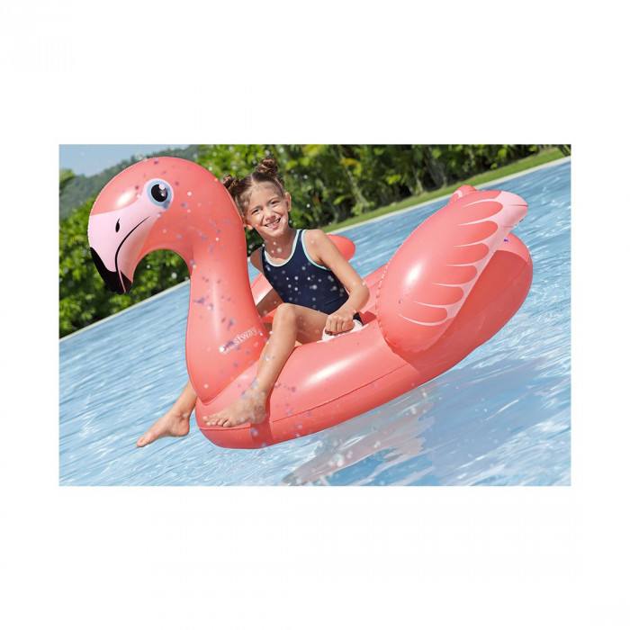Надувная игрушка для катания верхом Фламинго (Fancy Flamingo) 138 х 107 см, BESTWAY, 41525, Винил, 2 ручки, Розовый, Цветная коробка