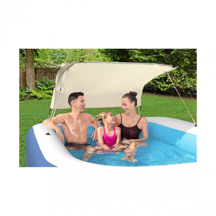 Детский надувной бассейн Summer Bliss Shaded 254 х 178 х 140 см, BESTWAY, 54449, Винил, 778 л., 3+, Съемный тент, Голубой, Цветная коробка